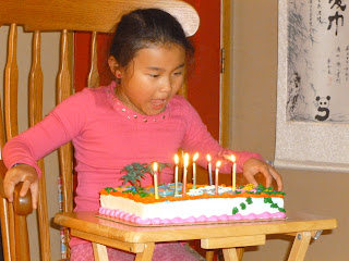 My 9-year-old on her real birthday. (Breakfast burrito was her special request.) |